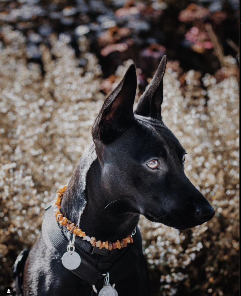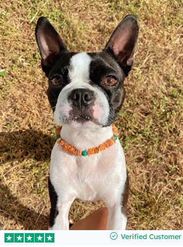 Die Halskette ist aus rohem baltischen Bernstein handgefertigt und wehrt Zecken und Flöhe auf natürliche Weise und ohne Chemikalien ab.